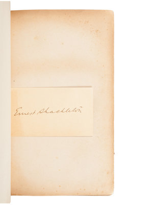 FIRST EDITION of Shackleton’s account of his ill-fated Imperial Trans-Antarctic Expedition. SHACKLETON’S SIGNATURE on a card tipped-in. Conrad p.224; Renard 1460; Rosove 308.A1; Spence 1107; Taurus 105.