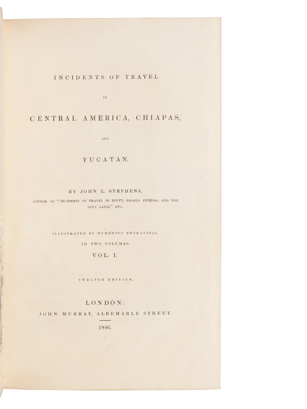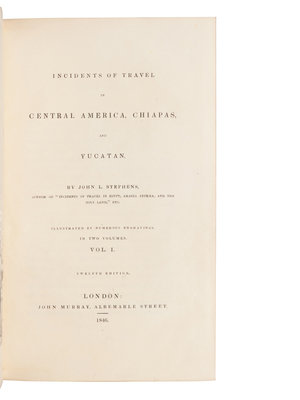 [TRAVEL & EXPLORATION]. STEPHENS, John Lloyd (1805-1852). Incidents of Travel in Central America, Chiapas, and Yucatan. London: John Murray, 1846.