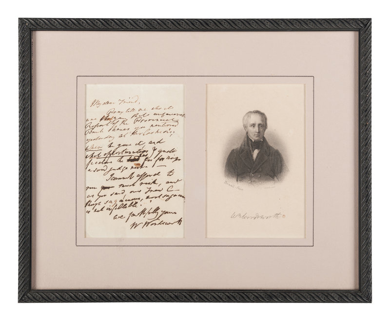 1 page, 8vo, on a bifolium, addressed in Wordsworth's hand on an integral leaf, some minor staining, lower margin trimmed irregularly.