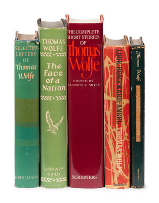 The Face of a Nation. New York: The Literary Guild of America, Inc., 1939. Dust jacket (price clipped). -- Mannerhouse. New York: Harper & Brothers Publishers, 1948. -- Look Homeward, Angel. New York: Charles Scribner’s Sons, 1957. Dust jacket (price-clipped). Provenance: Francis M. Woodward (bookplate). -- Selected Letters of Thomas Wolfe. Elizabeth Nowell, editor. London: Heinemann, 1958. -- The Story of a Novel. New York: Charles Scribner’s Sons, 1963. Dust jacket. -- The Complete Short Stories of Thomas Wolfe. Francis E. Skipp, editor. New York: Charles Scribner’s Sons, 1987. -- And approximately 28 others. Together, approximately 34 volumes, 8vo, published between various dates, most later editions, all in original publisher’s cloth, cloth-backed boards, printed boards or printed wrappers, with dust jackets where indicated, condition generally fine. Complete list available on request.
