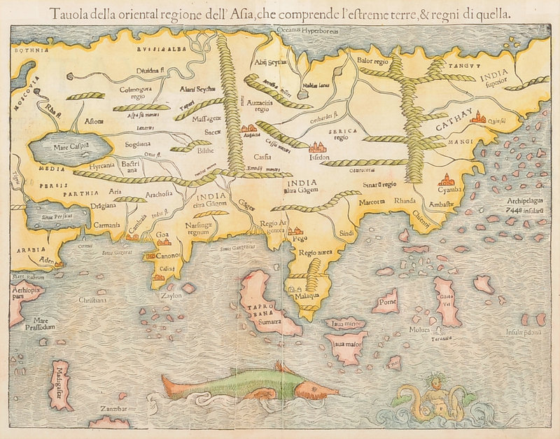 [ASIA] -- MUENSTER, Sebastian (1489-1552). Tavola della Oriental Regione dell'Asia, che Comprende l'Estreme Terre, & Regni di Quella. [Basel, ca 1550].