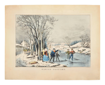 Winter Pastime, 1855. (G. 7281). Medium format lithograph with hand-coloring heightened in gum arabic, on wove paper, matted and framed, 378 x 479 mm sheet. Some minor mostly marginal soiling, a few short marginal tears repaired verso, a few tiny dealer pencil annotations.