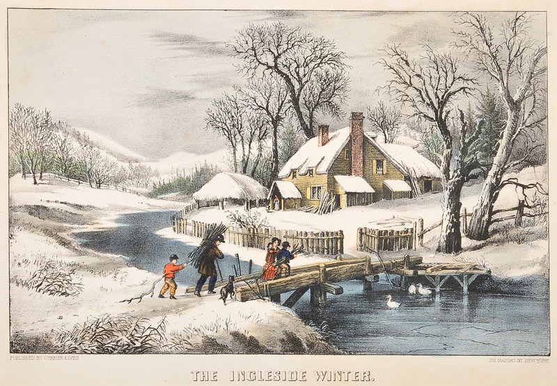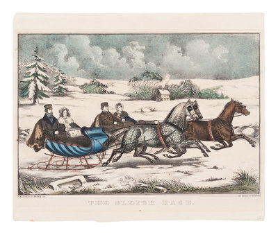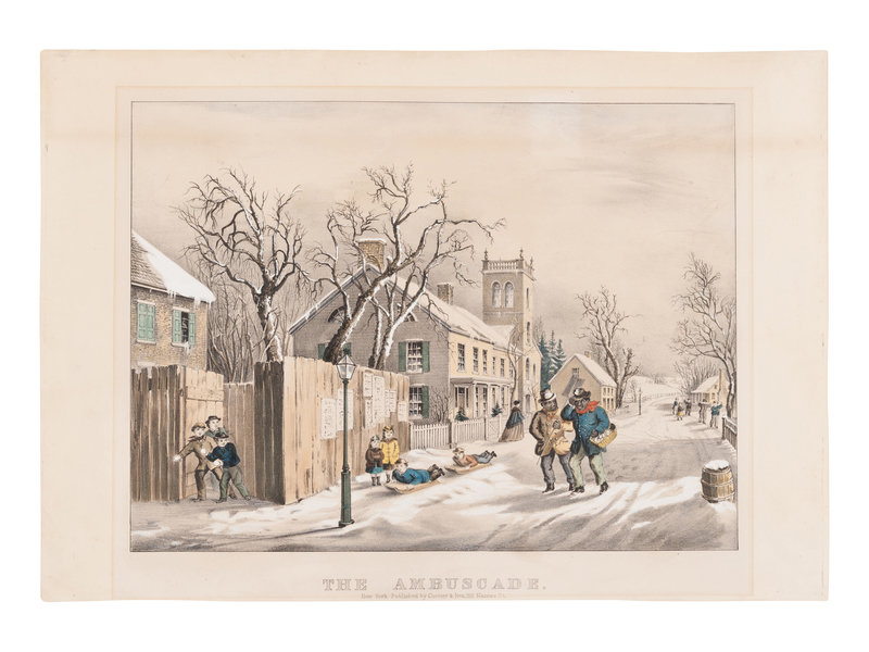The Ingleside Winter, n.d. (G.3324). -- The Sleigh Race, n.d. (G.5952). -- The Ambuscade, n.d. (G.0106). -- 3 small- or medium-format lithographs with hand-coloring heightened in gum arabic on wove paper, 355 x 507 mm sheet or smaller, matted and framed, some minor toning or mat burn.