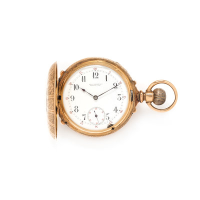 CALHOUN, 14K PINK GOLD HUNTER CASE POCKET WATCH