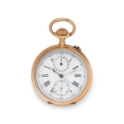 18K PINK GOLD CHRONOGRAPH OPEN FACE POCKET WATCH