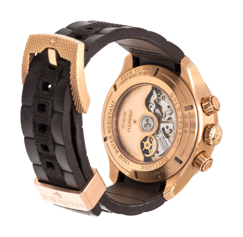 Case back stamp: ZENITH DEFY CLASSIC GOLD 750 (Swiss hallmarks) 18/22.0506.4000 SWISS MADE.