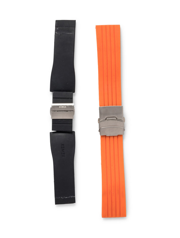 Accompanied by an extra orange rubber strap, black rubber strap with deployant clasp signed XEMEX and a Xemex instruction booklet, guarantee card, inner fold and outer box.