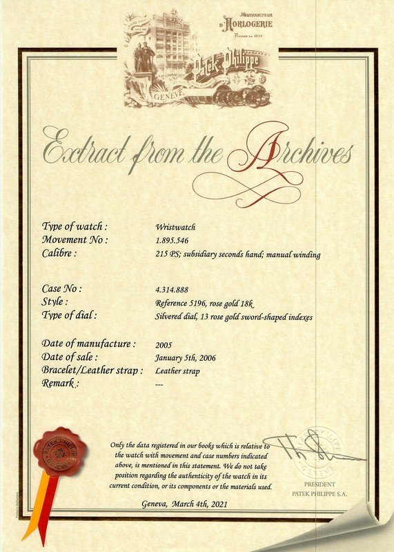 Accompanied by a Patek Philippe extract from the archives, 2021, stating the date of manufacture, 2005 and date of sale, January 5th, 2006.