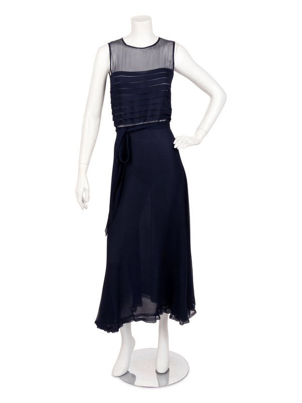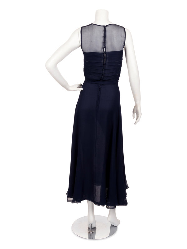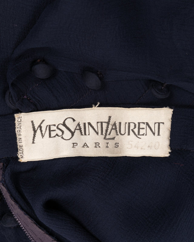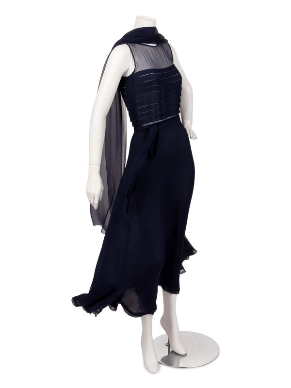 Yves Saint Laurent Haute Couture Navy Chiffon Dress with Scarf, 1970s