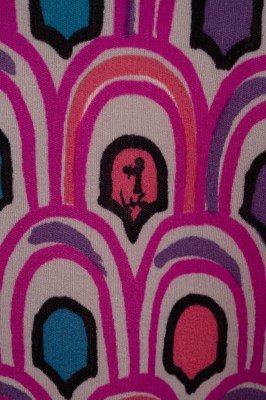 Pink, Blue and Purple silk printed long sleeve top with bateau neckline.