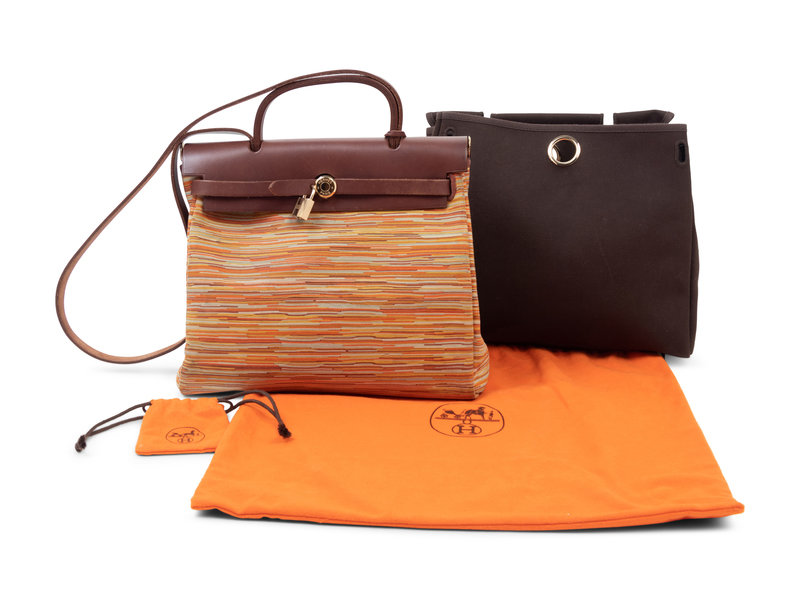 Hermès Vibrato Leather and Canvas Convertible Herbag, 2002