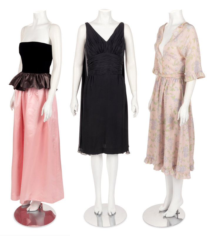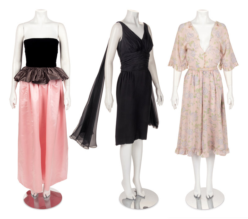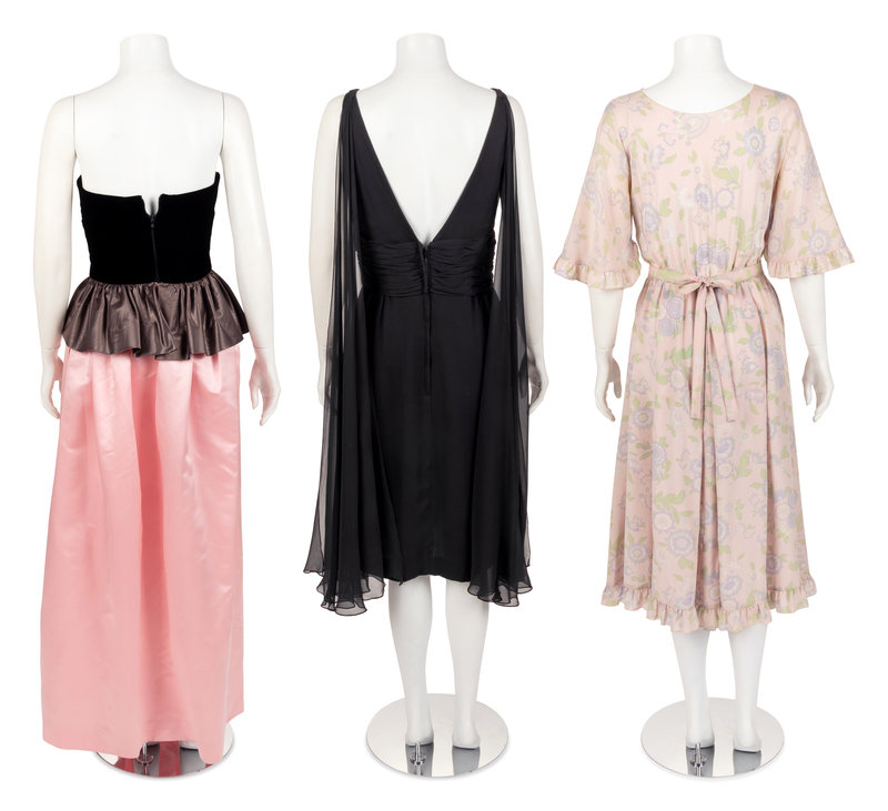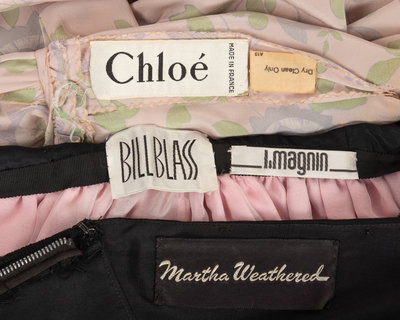 Three Designer Dresses: One Martha Weathered, One Bill Blass, One Chloé, 1980s