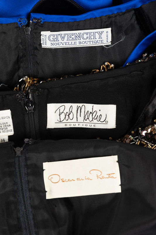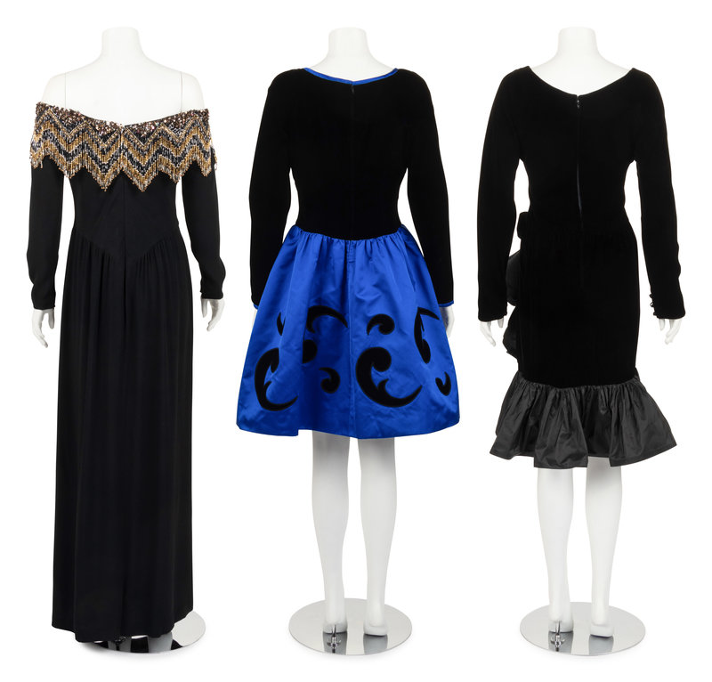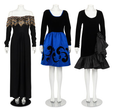 Three Designer Evening Dresses: One Oscar de la Renta, One Givenchy, One Bob Mackie, 1980s