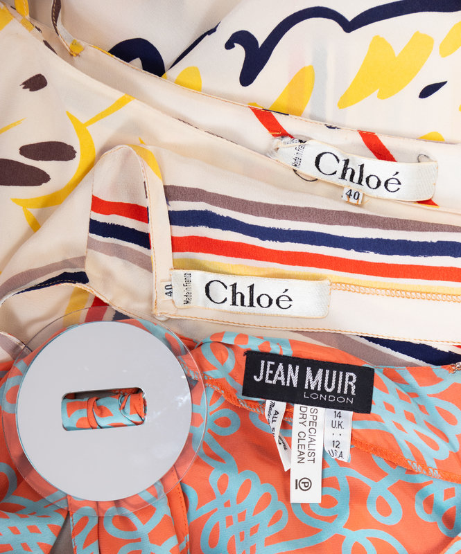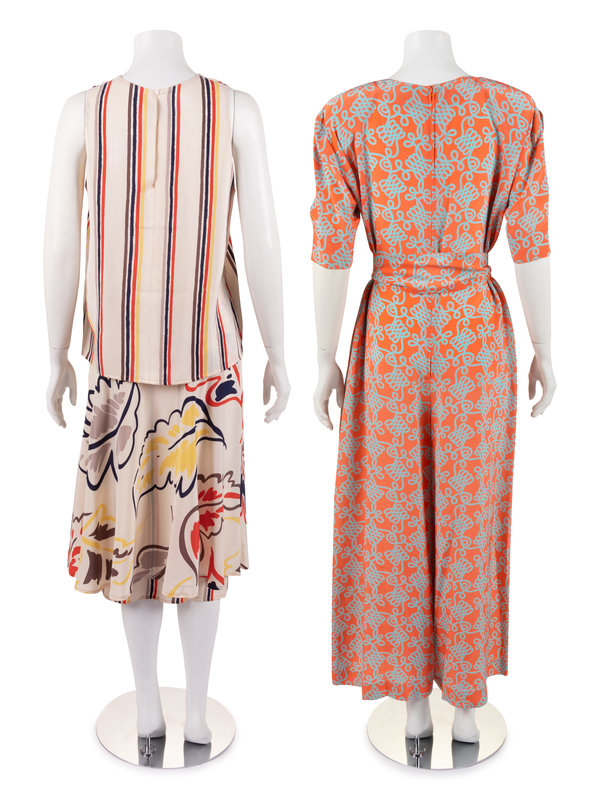 Two Designer Ensembles: One Jean Muir Belted Jumpsuit and One Chloé Skirt Ensemble, 1980s