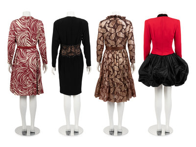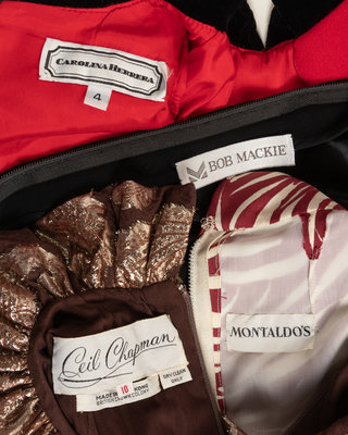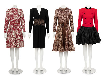 Four Designer Dresses: One Ceil Chapman, One Sam Winston by Roxane, One Bob Mackie, One Carolina Herrera, 1980s