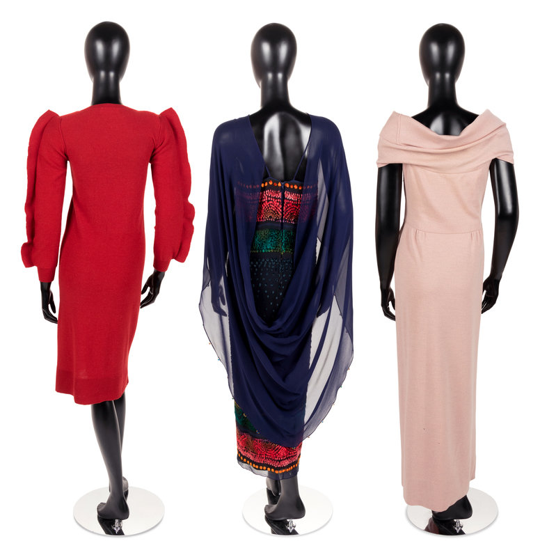 Three Designer Dresses: One Sonia Rykiel, One Pauline Trigere, and One Carol Peretz, 1980s