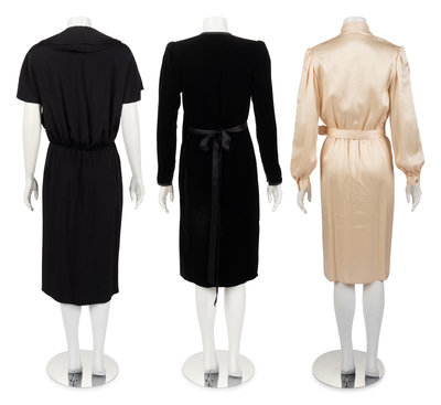 Three Designer Wrap Dresses: Two Galanos, One Yves Saint Laurent, 1980s