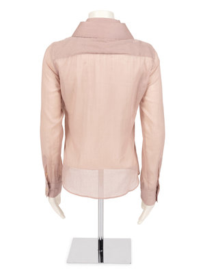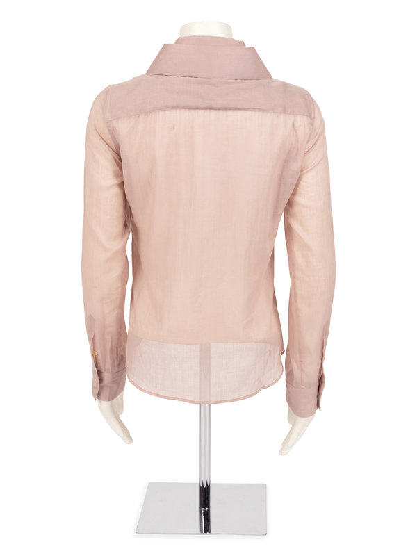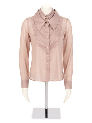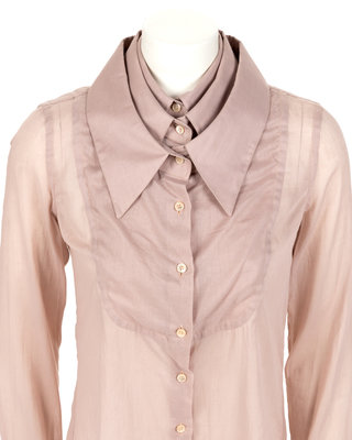 Mauve cotton button down, long sleeve top with three collars.