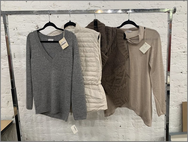 Four Brunello Cucinelli Tops: Three Knits, One Puff Vest, 2000s