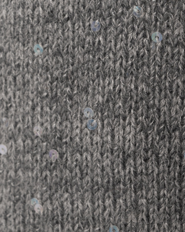 Grey cashmere blend V-neck long sleeve sweater with iridescent sequin embellishment throughout. Found with original sales tag, listed price is missing.