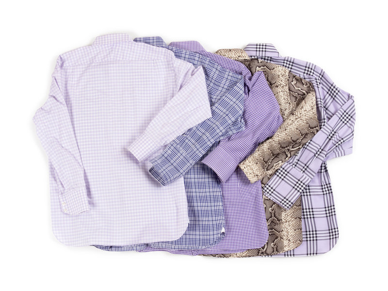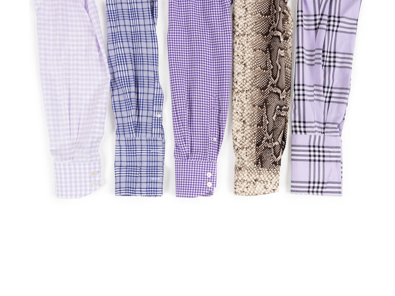 Purple and white checkered men's button down shirt.