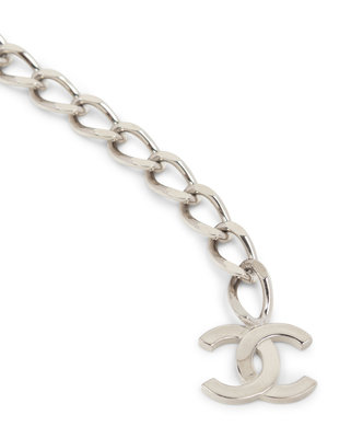 Silver-tone chain belt with partial second drop chain, hook closure and CC logos throughout, Spring 1997.
