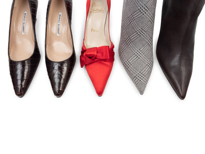 Five Pairs of Designer Shoes: One Christian Louboutin, Two Manolo Blahnik, One Jimmy Choo, One Gucci, 2000s
