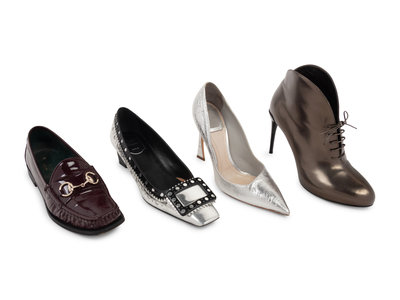 Four Pairs of Designer Shoes: One Roger Vivier, One Christian Dior, Two Gucci, 2000s