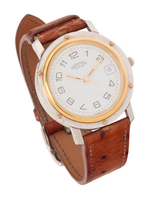 Hermès Ostrich Leather Men's Clipper Watch, 1998