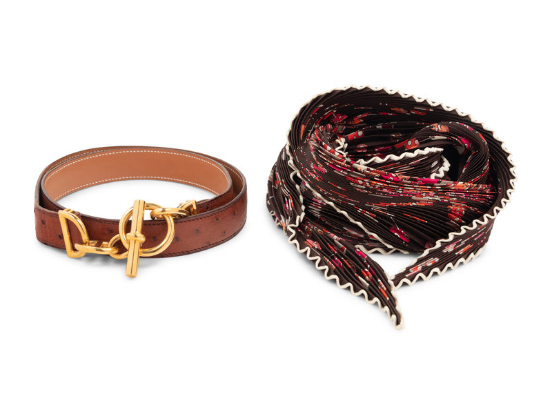 Hermès Ostrich Belt and Plisse Scarf, 1994-2008