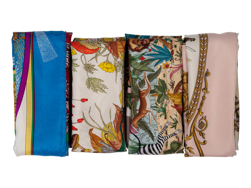 Four Silk Scarves: Two Hermès and Two Gucci