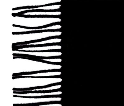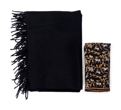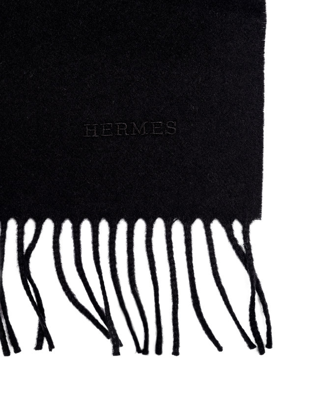 Black cashmere shawl scarf with fringe.