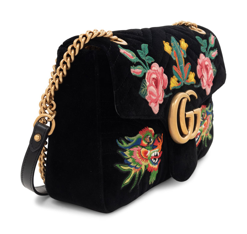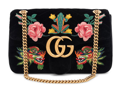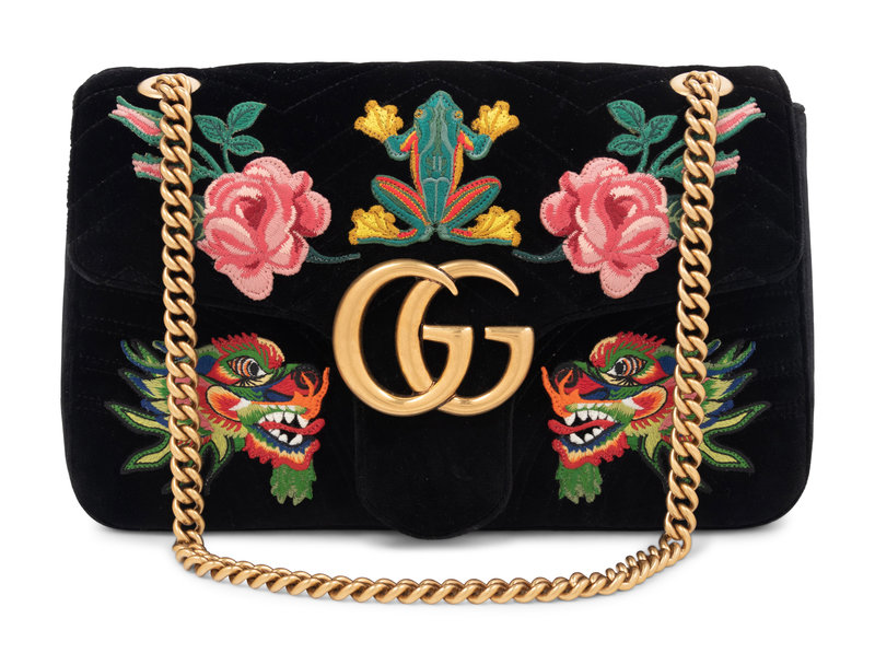 Gucci 110th Anniversary GG Marmont Small Dragon Velvet Shoulder Bag, 2017