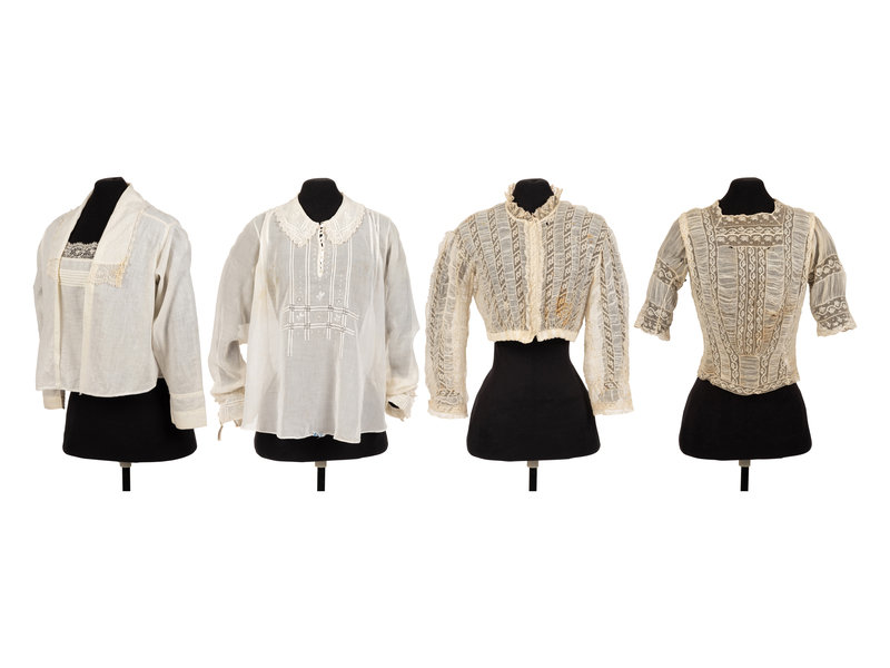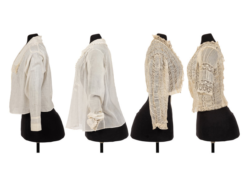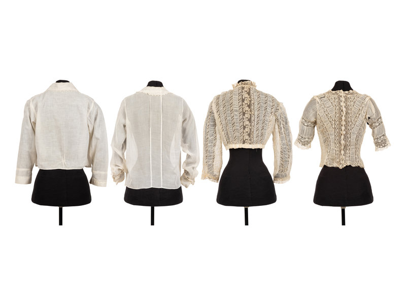 Collection of Six Shirtwaists and One Straw Hat, 1890-1920