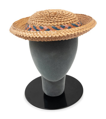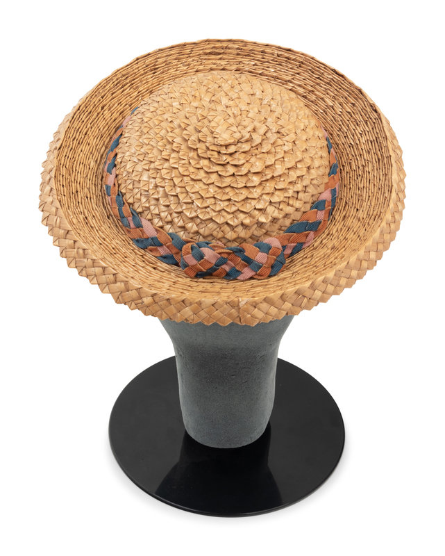 This lot includes seven items; six shirtwaists and blouses, one hat from the Tasha Tudor Collection of the Colonial Williamsburg Foundation. Tasha Tudor (née Starling Burgess, 1915-2008) was a writer and illustrator of children’s books, including Mother Goose and Corgiville Fair. The idyllic, 19th century world she painted in her books was the lifestyle she pursued: for much of her adult life Tudor lived on New England farms, weaving, tending to animals, baking bread, and collecting, mending, and wearing centuries-old clothing.
