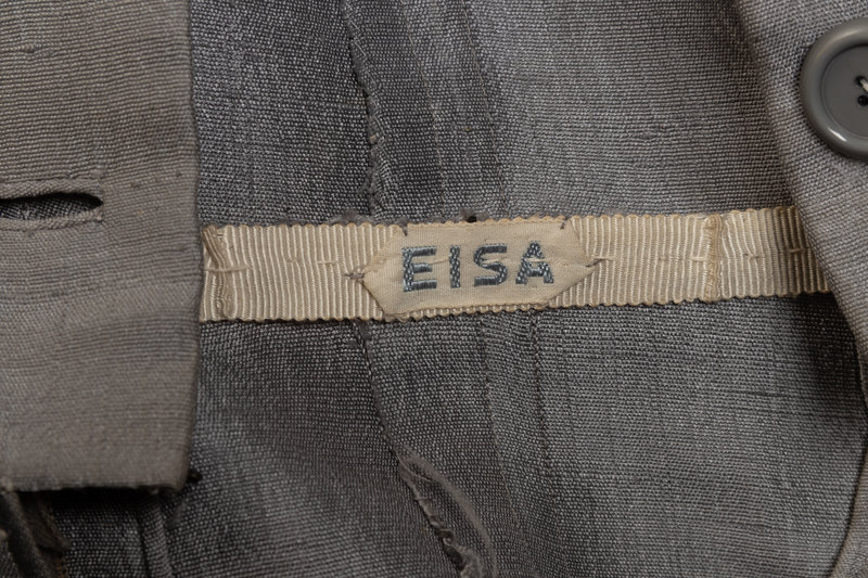 Anne Moen Bullitt amassed a storied collection of haute couture as a result of extensive international travel throughout her four marriages. Her second husband, Nicholas Duke Biddle, was vice consul of the American embassy in Spain, “and it was here that the kernel of Anne’s couture wardrobe was formed. With easy access to Cristobal Balenciaga’s ateliers in Madrid, Anne ultimately had more than a hundred couture ensembles made for her, all under the Spanish name Eisa.” Bullitt eventually settled in Ireland, pursuing her hobbies of horse breeding and collecting vintage clothing.