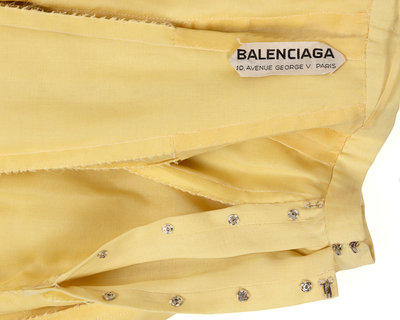 The items in this lot were made for and worn by Elizabeth Parke Firestone (1897-1990). Born to a prominent Illinois family and wife of tire magnate Harvey Firestone, Elizabeth Parke Firestone cultivated a fashion sense so refined as to earn her recognition among the “Best Dressed Women in the World.” She travelled extensively, collaborating with the foremost European couturiers on made-to-order versions of runway pieces. A faithful couture client, she corresponded regularly with Dior, and Balenciaga kept a mannequin made to her measurements. Many of her fashions now reside in the collection of the Henry Ford Foundation.
