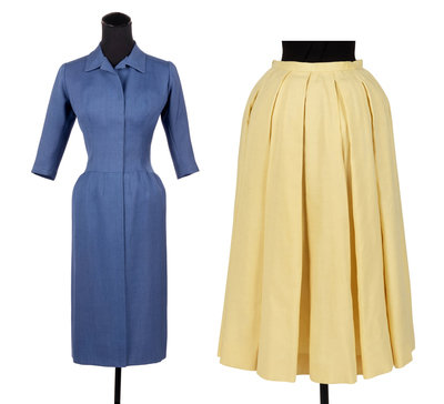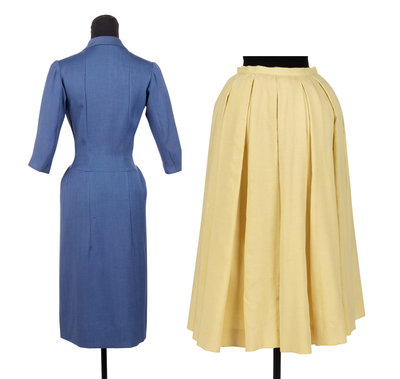 Two Balenciaga Haute Couture Items: One Day Dress, One Pleated Skirt, 1950s
