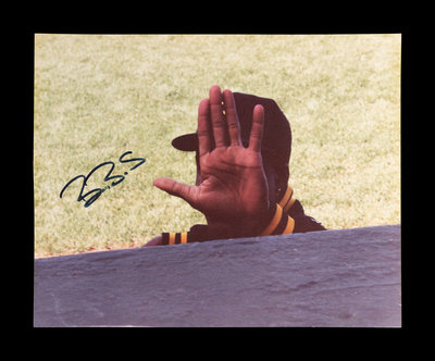 capturing a moment when the mercurial home run king apparently did not want his photo taken at Wrigley Field. Inscribed "Barry Bonds" in black Sharpie. Photograph taken by Steven Schwab, whose work has been featured in the National Baseball Hall of Fame.