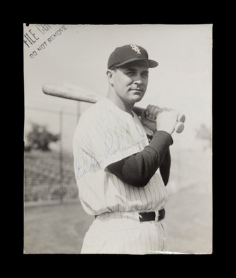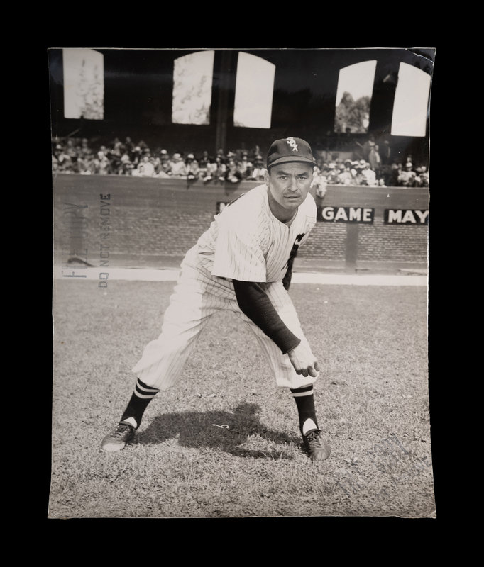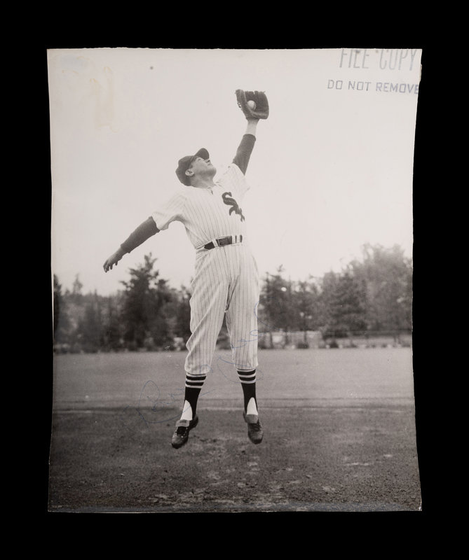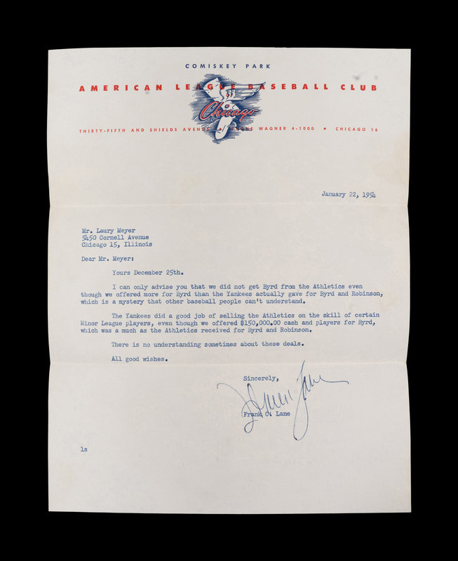 comprising of 23 original Type One photographs sourced directly from the front office with nine signed photos in light ink including Nellie Fox and Minnie Minoso among others; an 11th Annual Baseball Coaches Hall of Fame Dinner inscribed "Minnie Minoso #9" in red Sharpie; and a letter on Chicago White Sox American League Baseball Club, Comiskey Park envelope and letterhead dated January 22, 1954 from White Sox General Manager Frank Lane addressed: