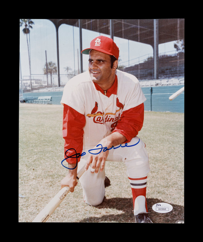 8 x 10 color image of Torre in St. Louis Cardinals uniform inscribed "Joe Torre" in blue sharpie. JSA certified.
