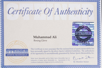 A Pair of Muhammad Ali Autographed Boxing Gloves (One Signed) Steiner,