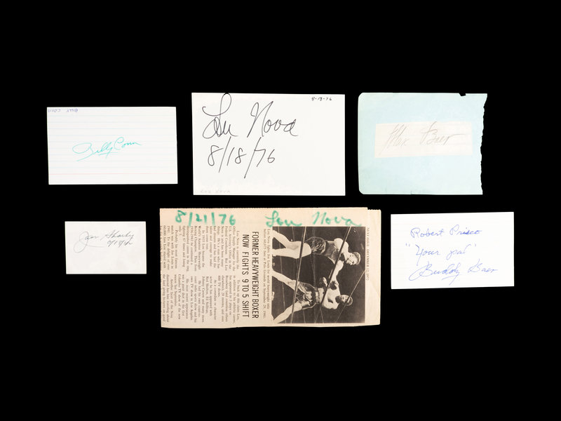 comprising from signatures of Buddy Baer, Lou Nova (2), Billy Conn, Max Baer and Jack Sharkey.