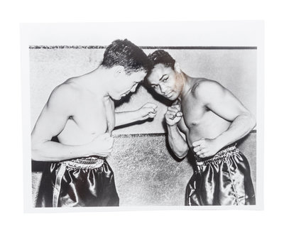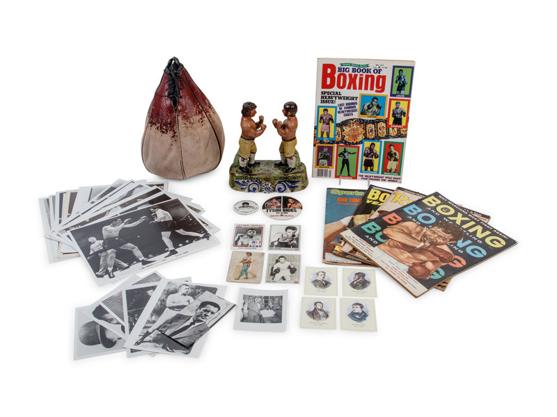 comprising of various photographs of champions, media photos, buttons, magazines, a punching speed bag and Spring and Langan Bare Knuckle Boxers Pottery.