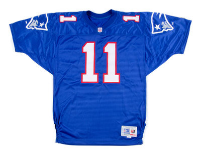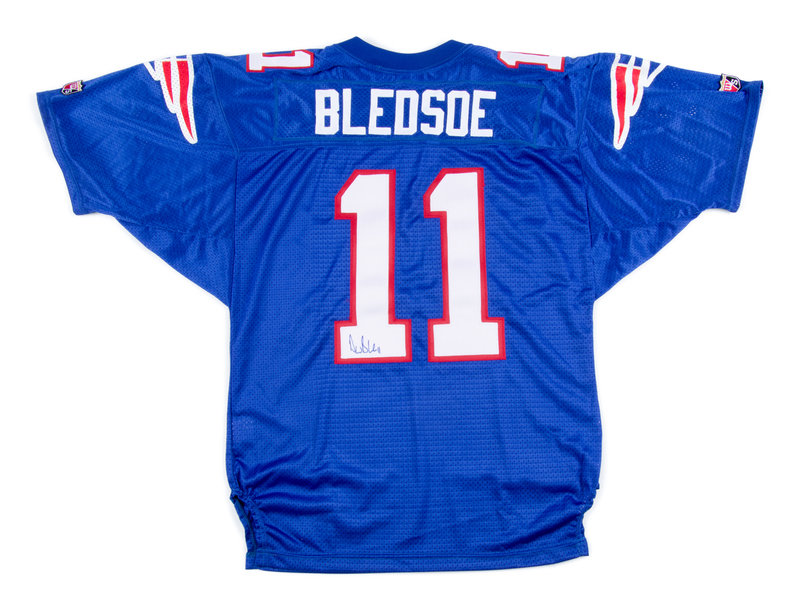 inscribed ("Drew Bledsoe 11") in blue Sharpie on back inside number 1.