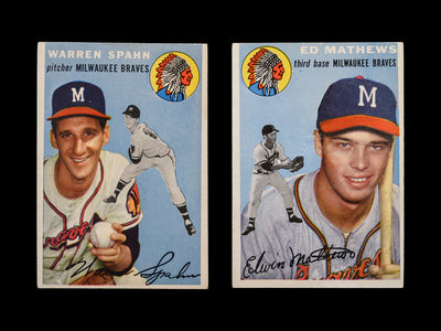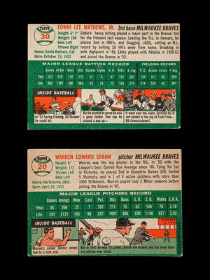 A Group of 1954 Topps Warren Spahn No. 20 and Ed Mathews No. 30 Baseball Cards