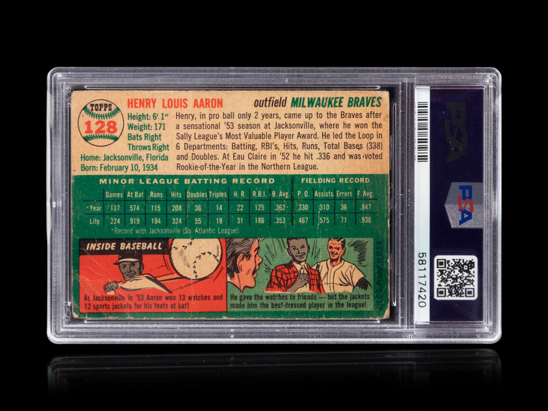 A 1954 Topps Hank Aaron Rookie Baseball Card No. 128, PSA 1