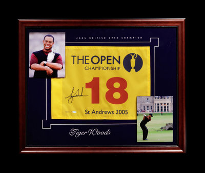 A Tiger Woods Signed 2005 British Open Flag Upper Deck Authenticated Limited Edition Display,