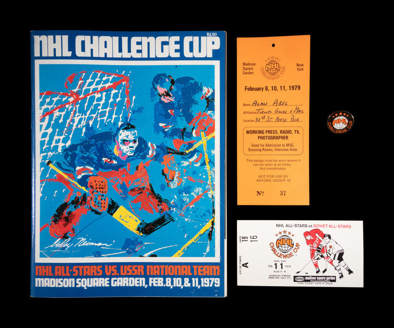 comprising of a NHL All-Stars vs USSR National Team program, ticket, press pass and press pin.