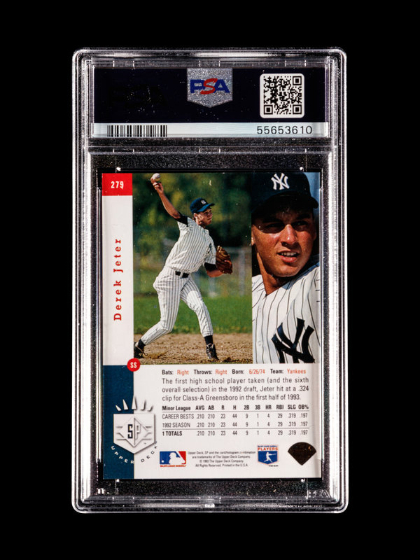 A 1993 Upper Deck SP Foil Derek Jeter Rookie Baseball Card No. 279, PSA 7 NM